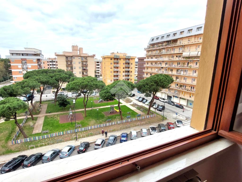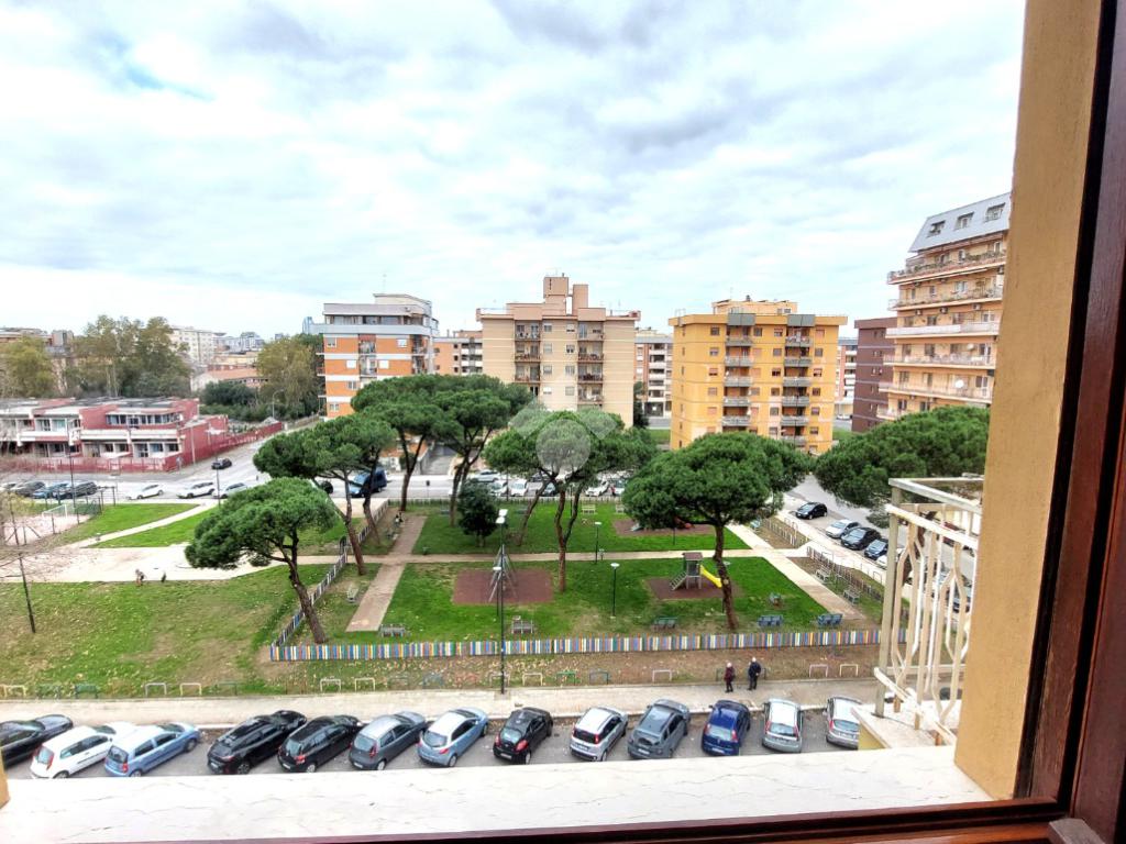 L'ampio ingresso ci porta, da un lato alla cucina abitabile con l'uscita sul balcone e dall'altro alla sala di 27 Mq con uscita sul Terrazzo di 15 Mq. che affaccia sul parco.